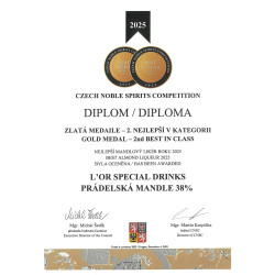 Čistě přírodní lihovina, jehož základem je vinný destilát a mandlový extrakt.